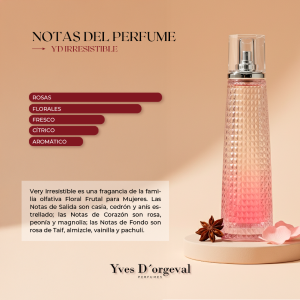 Las Notas de Salida son anís, casia y verbena de limón; las Notas de Corazón son Rosa, Peonía y Magnolia; la Nota de Fondo es Taif Rose.