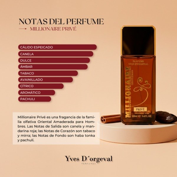 Las Notas de Salida son canela y mandarina roja; las Notas de Corazón son tabaco y mirra; las Notas de Fondo son haba tonka y pachulí.